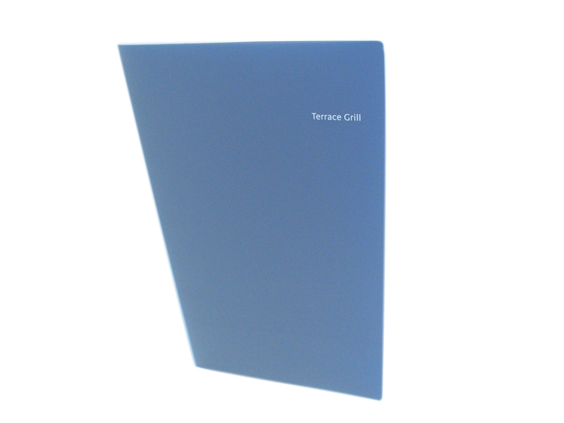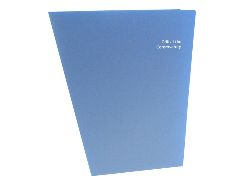 WO25684 - A4 Angled Polyprop Folder Clear Frosted Outer Screen Printed In One Colour, Plain Blue Polyprop Inner - Grill At The Conservatory WO25684 - A4 Angled Polyprop Folder Clear Frosted Outer Screen Printed In One Colour, Plain Blue Polyprop Inner - Grill At The Conservatory (Click for larger image)