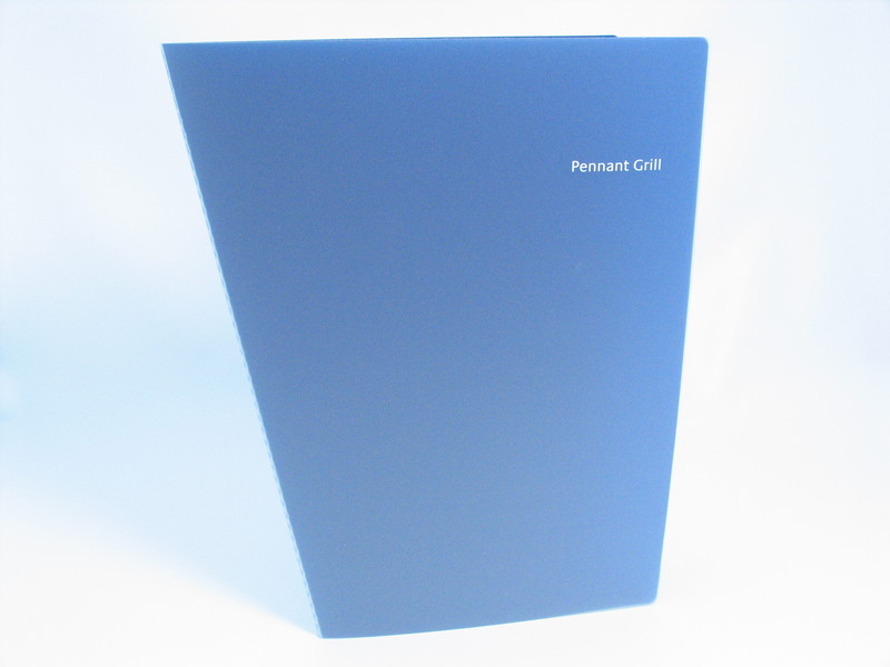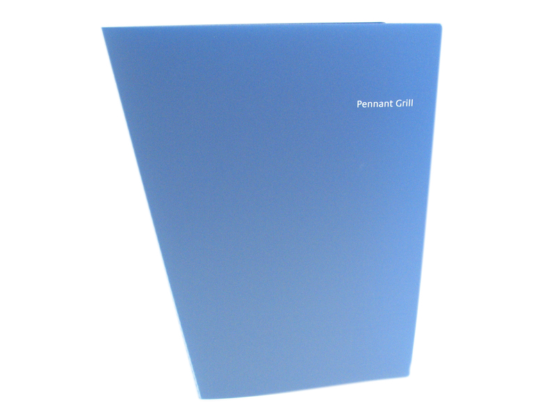 WO25684 - A4 Angled Polyprop Folder Clear Frosted Outer Screen Printed In One Colour, Plain Blue Polyprop Inner - Pennant Grill WO25684 - A4 Angled Polyprop Folder Clear Frosted Outer Screen Printed In One Colour, Plain Blue Polyprop Inner - Pennant Grill (Click for larger image)