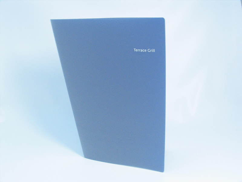 WO25684 - A4 Angled Polyprop Folder Clear Frosted Outer Screen Printed In One Colour, Plain Blue Polyprop Inner - Terrace Grill WO25684 - A4 Angled Polyprop Folder Clear Frosted Outer Screen Printed In One Colour, Plain Blue Polyprop Inner - Terrace Grill (Click for larger image)