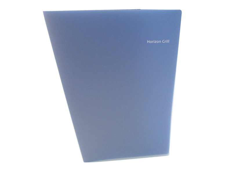WO25684 - A4 Angled Polyprop Folder Clear Frosted Outer Screen Printed In One Colour, Plain Blue Polyprop Inner - Horizon Grill WO25684 - A4 Angled Polyprop Folder Clear Frosted Outer Screen Printed In One Colour, Plain Blue Polyprop Inner - Horizon Grill (Click for larger image)