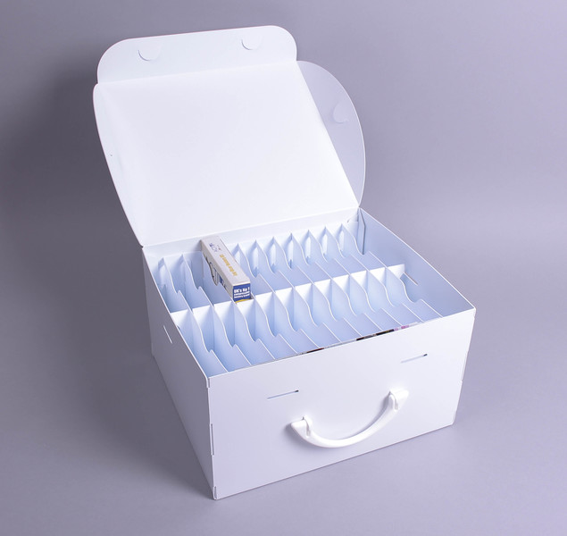 A custom size storage box with bespoke internal dividers ready to store medical or other items so that everything you need to complete a task is readily to hand when you need it