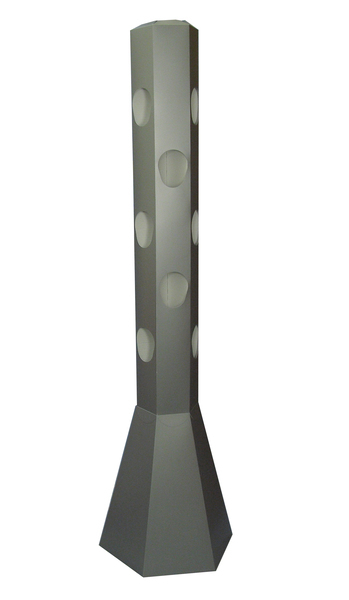 Outer tower and base units both made in 800 micron white polyprop. Creased and die cut to shape as per sample supplied. Flood screen printed silver to outside only with allover seal. Double sided tape applied to closing flaps on both items.
